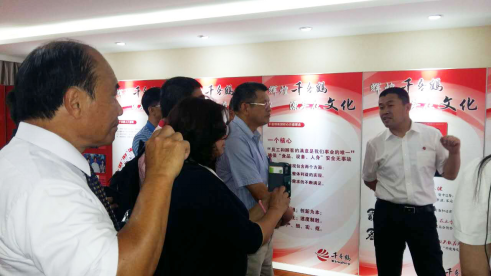 ? 參訪團參觀了千喜鶴的文化長廊,劉延云董事長為來賓介紹了千喜鶴的基本情況、發展歷程、所獲榮譽等。劉延云董事長指出,千喜鶴一直以來非常重視食品安全,始終把“三安”無事故作為企業發展的重要基礎,不斷改進與完善精細化管理系統,雙方在食品安全方面,有很多交流與合作的空間。