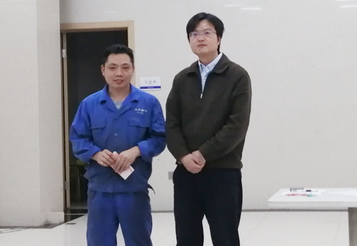 ????? 根據(jù)公司《員工獎(jiǎng)懲制度》,對(duì)在本次生產(chǎn)突擊任務(wù)中,表現(xiàn)突出的12位技工師傅們予以記小功、并獎(jiǎng)勵(lì)200元/人,他們是繆國(guó)建、江超、詹新宇、陳杰、陳清林、張勇、羅超、陳德全、張乾坤、張文仲、甘宇遵、李洪兵。圖為表彰現(xiàn)場(chǎng)情景。